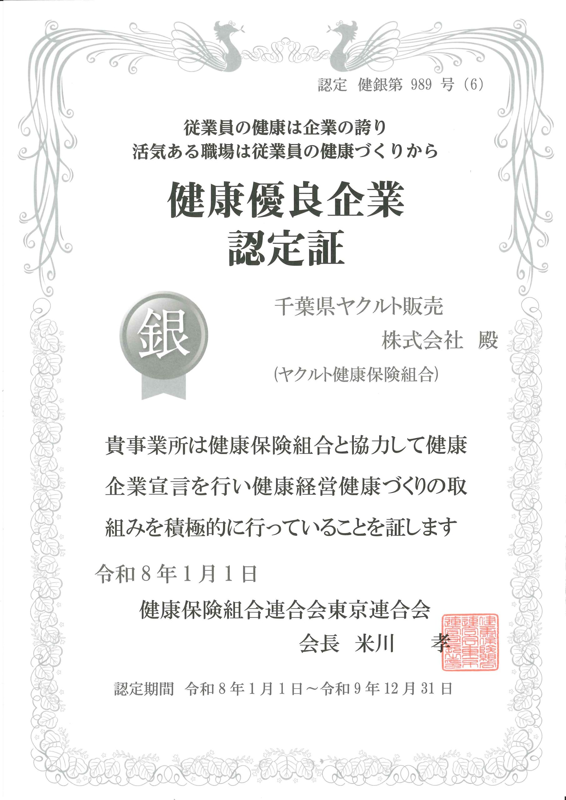 「健康優良企業(銀の認定)」を取得しました