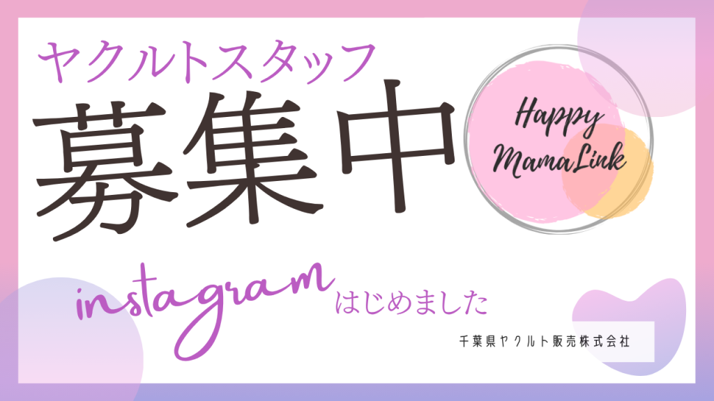 千葉県ヤクルト販売株式会社では、「ママと社会をつなぐ応援プロジェクト」としてInstagramをはじめました。子育ても、自分の夢もあきらめない!!ママの”がんばり”が笑顔に変わる場所へ♪いいね&フォローをよろしくお願いします。