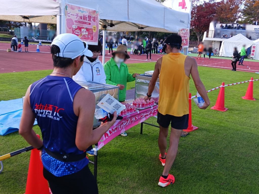 ランナーの皆様から「新商品出たんだ!うれしい!」「ピーチ味?おいしそう!」「マラソン大会いつもありがとう!」などたくさんの嬉しいお声をいただきました。