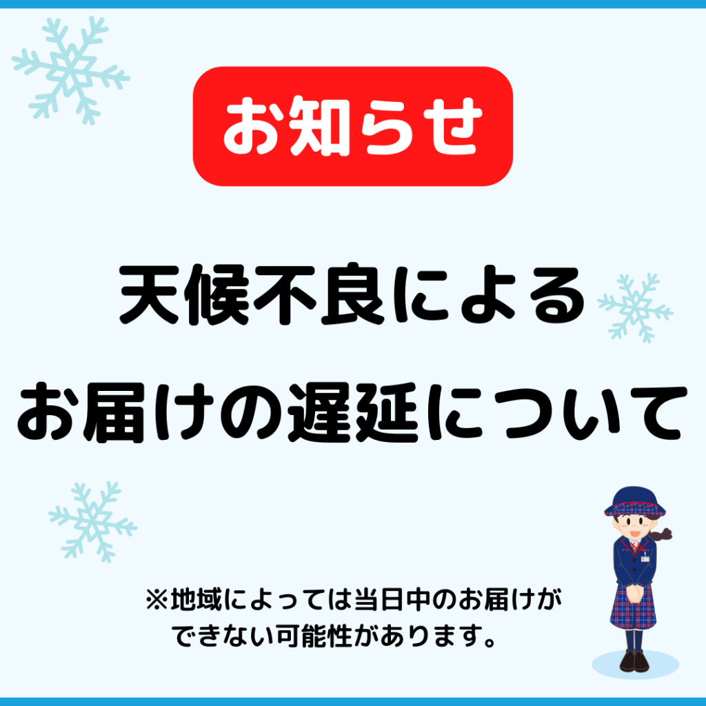 明日の路面状況によっては、お届けに遅れが生じる可能性がございます。